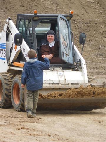 Сестра Милада, член ордена, так описывает строительные работы с погрузчиком Bobcat: «Когда мы купили участок в Драстах, он был забит множеством свалок и зарос взрослыми деревьями. Зная, что у нас не хватит денег, чтобы отремонтировать весь двор, мы решили сделать некоторые работы своими силами или с помощью волонтеров. Вскоре мы обнаружили, что нам нужны машины и оборудование для этих трудных работ, поэтому некоторые из нас научились водить трактор, пользоваться бензопилой или кусторезом и управлять погрузчиком Bobcat. Последний нам очень помог с самого начала, когда нам нужно было перемещать разнообразные тяжелые грузы, особенно большие пни для сжигания. Потом мы использовали его для перевозки поддонов с кирпичом, землей, камень для благоустройства на лугу и для посыпки гравием дорог в лесопарке.