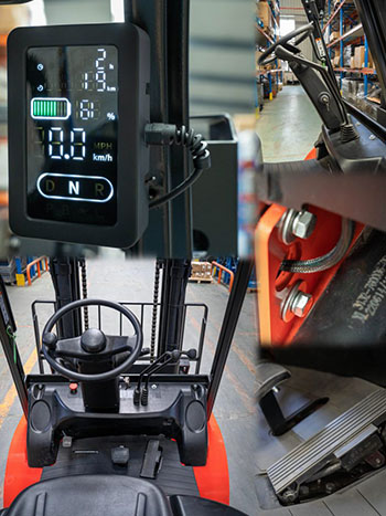 Кабина оператора и рабочее пространство новой серии EFL более просторны благодаря упрощенной панели и удобной педали. Серия оснащена новым ЖК-дисплеем, который четко показывает скорость, часы работы, состояние батареи, пробег и состояние парковки, поэтому оператор может легко понять состояние погрузчика одним взглядом.