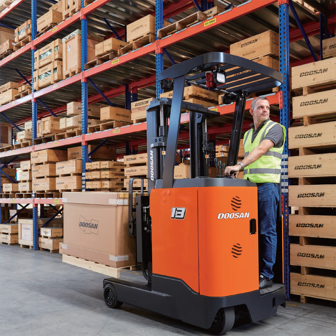 Новый электрический ричтрак серии 9 является лучшим партнером для вашего бизнеса, обеспечивая выдающуюся производительность и удобство с превосходными функциями Doosan.
