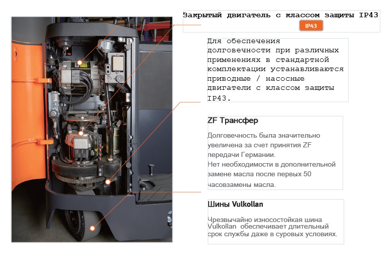 - закрытый двигатель с классом защиты IP43.