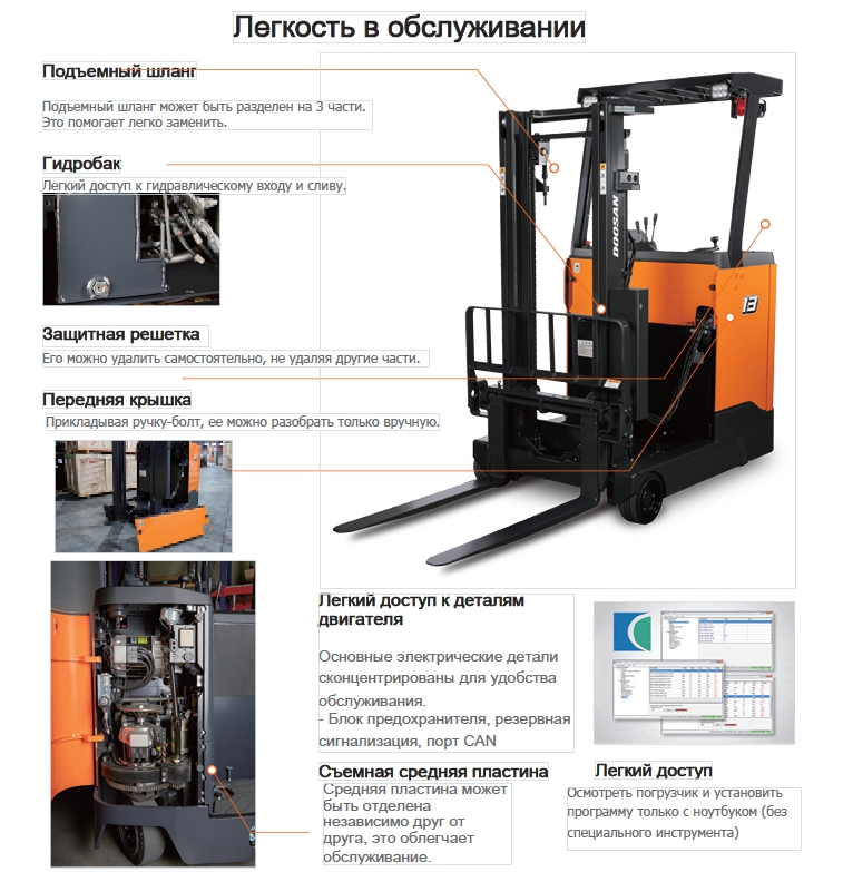 Отличительные особенности ричтрака Doosan обеспечивают долговечность в жестких условиях эксплуатации.
