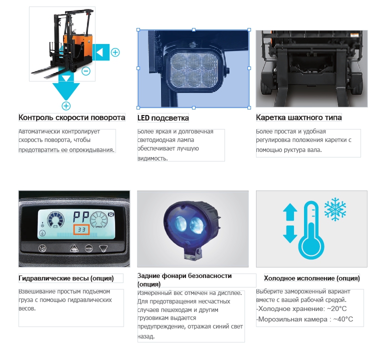 Широкий спектр опций обеспечивает высокую производительность, а также безопасность на рабочем месте, таких как "Система блокировки поворота" итд.