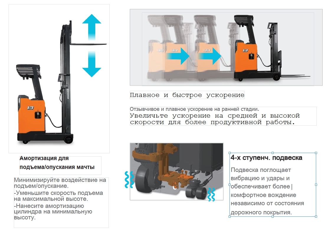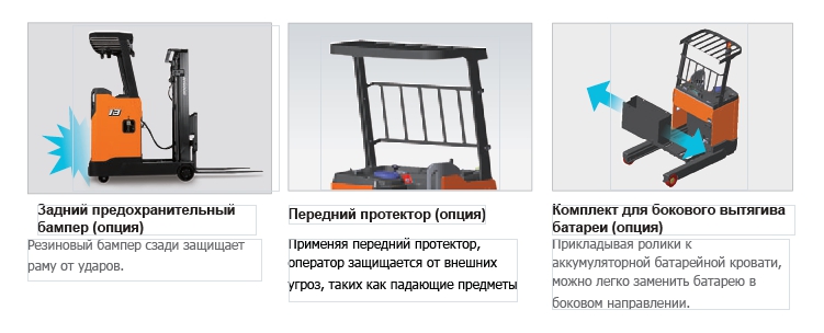 Благодаря дифференцированной особенности Doosan, новый ричтрак серии 9 превосходит самые высокие требования к безопасной эксплуатации.