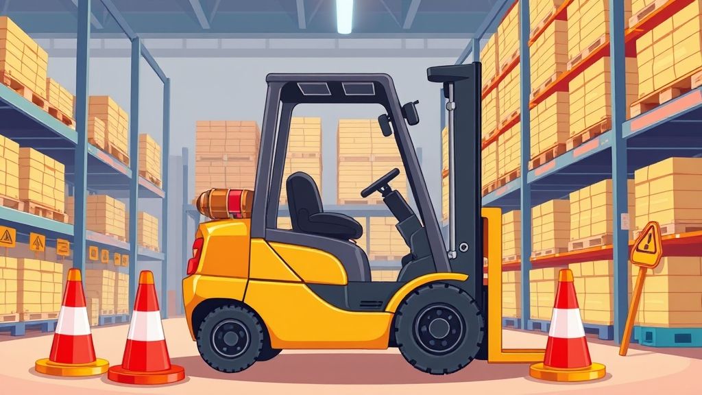 Остановите вилочный погрузчик безопасно