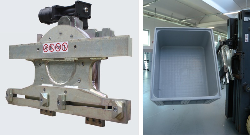В качестве опции установка может быть оснащена боковой опорной вилкой для удерживания корзин и контейнеров в верхней части во время вращения. Установка доступна также для применения в агрессивных средах со специальной окраской на основе цинка; например, для рыбной промышленности.