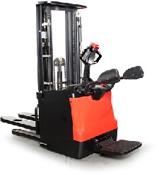 Эти машины схожи с сопровождаемыми штабелерами, но комплектуются специальной откидной платформой для оператора. Такое решение позволяет увеличить скорость передвижения до 10 км/ч, что, соответственно, повышает производительность работ.