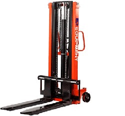 Это один из наиболее востребованных вариантов техники. Он оснащается гидравлической системой, отличается максимально простой и надежной конструкцией. Перемещение и подъем вил производятся с помощью мускульной силы оператора. В некоторых случаях ручные штабелеры комплектуются сбрасывающим устройством, которое предотвращает повреждение груза при опускании. Грузоподъемность техники обычно находится в пределах 500–2000 кг, а максимальная высота подъема составляет 3 м.