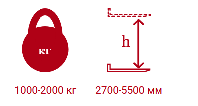 • высота подъема. Ее нужно подбирать в соответствии с параметрами используемых стеллажных систем;