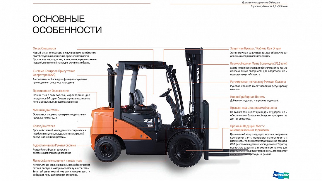 Дизельные погрузчики Doosan 7-ой серии: фото и видео