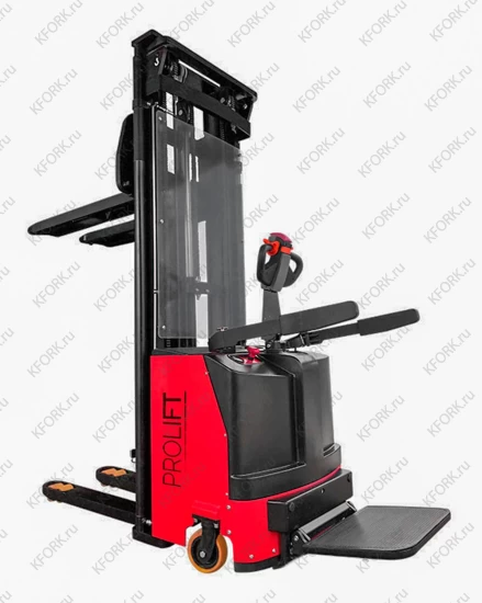 Самоходный электроштабелер Prolift SDK 1536 li-ion с откидной платформой для оператора и с литиево-ионной батареей способен эффективно и безопасно работать на складах с многоуровневыми стеллажными системами. Высота подъёма электроштабелера составляет 3600 мм, а грузоподъёмность – 1500 кг.