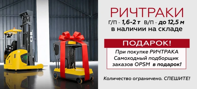 При покупке ричтрака самоходный подборщик заказов OPSM в подарок! Количество ричтраков, участвующей в акции - ограничено. Звоните!